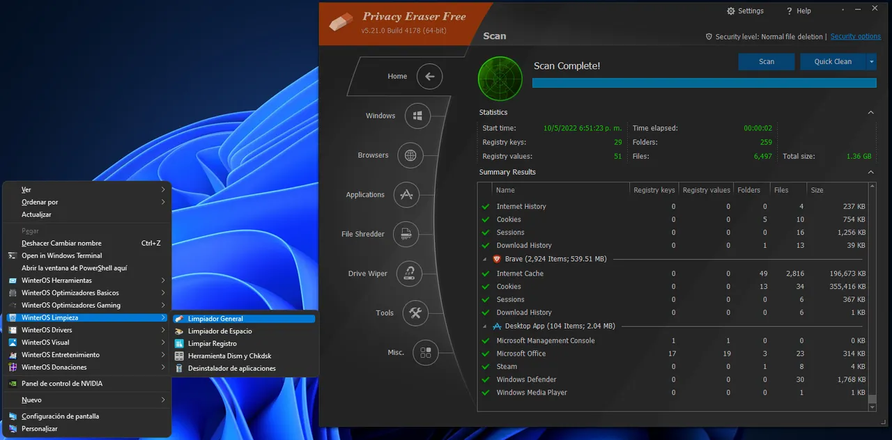 - Posee una excelente herramientas para limpiar todos los registros, cache y también basura del equipo
